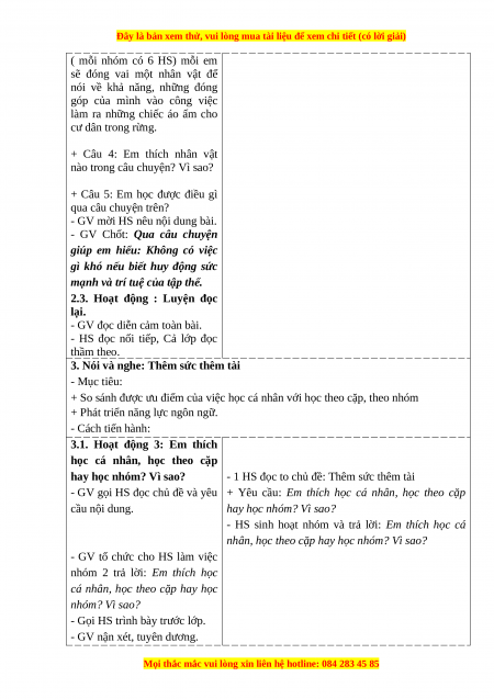 + Yêu cầu: Em thích học cá nhân, học theo cặp