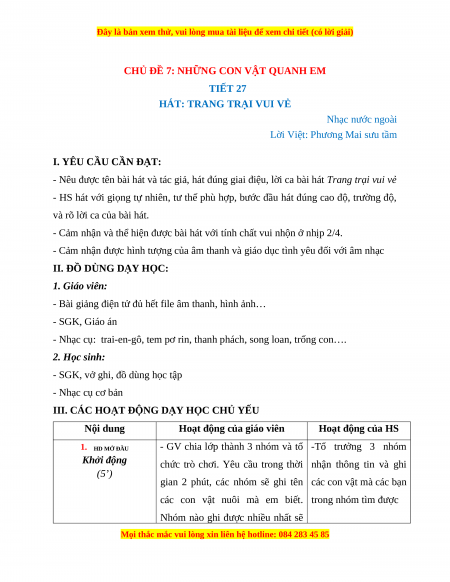 - Nêu được tên bài hát và tác giả, hát đúng giai điệu, lời ca bài hát Trang trại vui vẻ