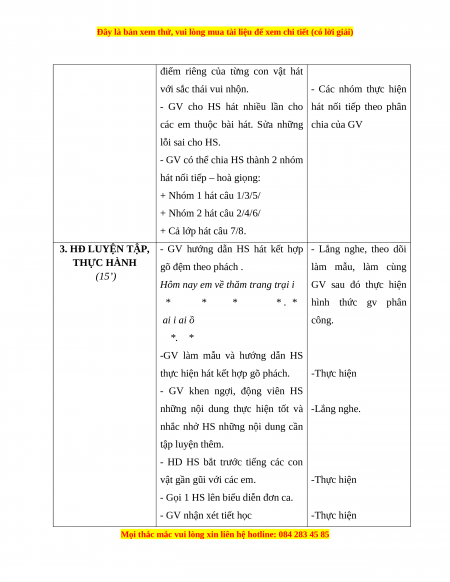 3. HĐ LUYỆN TẬP, - GV hướng dẫn HS hát kết hợp - Lắng nghe, theo dõi THỰC HÀNH gõ đệm theo phách . làm mẫu, làm cùng (15’)