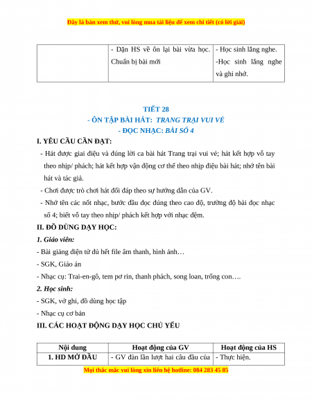 - SGK, vở ghi, đồ dùng học tập - Nhạc cụ cơ bản