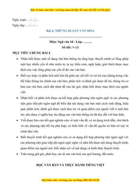 - Nhận biết được một số dạng văn bản thông tin tổng hợp: thuyết minh có lồng ghép một