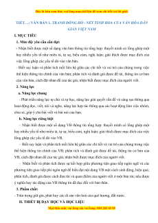 TIẾT…: VĂN BẢN 1. TRANH ĐÔNG HỒ - NÉT TINH HOA CỦA VĂN HÓA DÂN