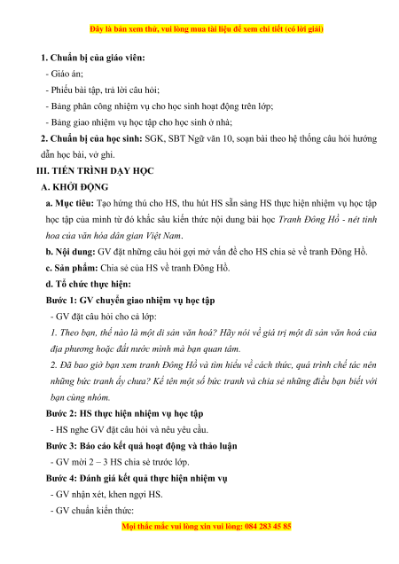 b. Nội dung: GV đặt những câu hỏi gợi mở vấn đề cho HS chia sẻ về tranh Đông Hồ.