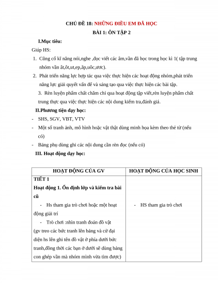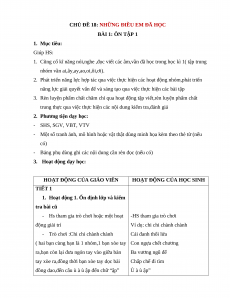 CHỦ ĐỀ 18: NHỮNG ĐIỀU EM ĐÃ HỌC BÀI 1: ÔN TẬP 1 1. Mục tiêu: Giúp HS: