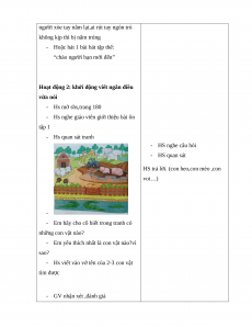- Hs nghe giáo viên giới thiệu bài ôn tập 1 - Hs quan sát tranh - HS nghe câu hỏi - HS quan sát