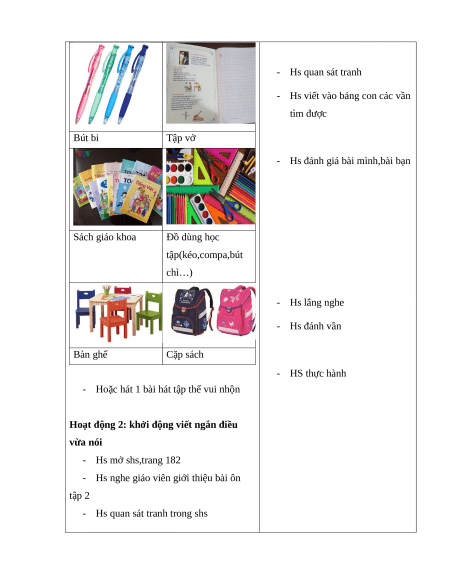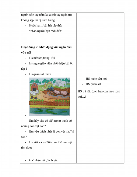 Hoạt động 2: khởi động viết ngắn điều vừa nói - Hs mở shs,trang 180