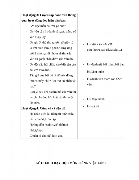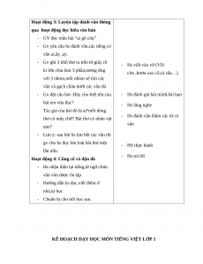 KẾ HOẠCH DẠY HỌC MÔN TIẾNG VIỆT LỚP 1