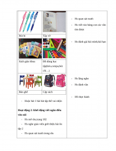 - Một số tranh ảnh, mô hình hoặc vật thật dùng minh họa kèm theo thẻ từ (nếu có)