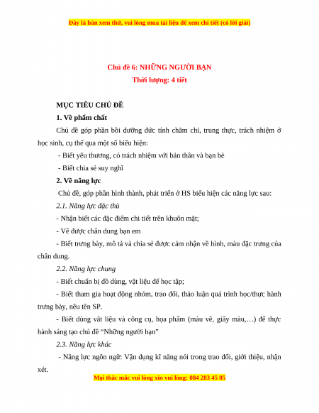 nhưng đảm bảo chủ đề được thực hiện trong 4 tiết học.)
