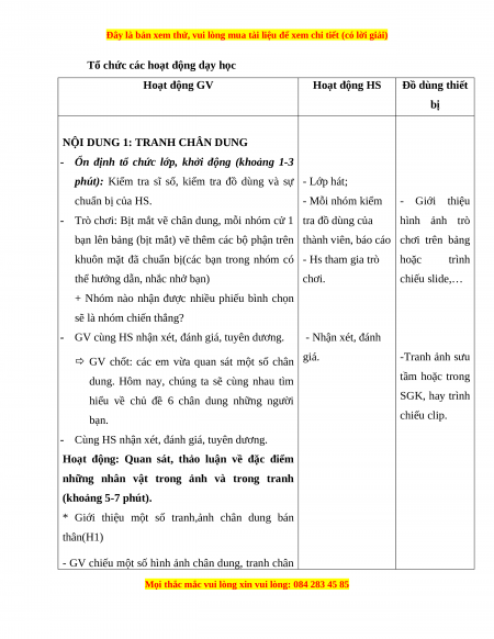 NỘI DUNG 1: TRANH CHÂN DUNG