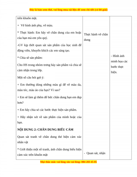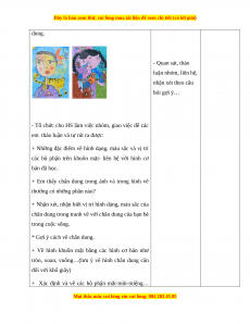 - Biết trưng bày, mô tả và chia sẻ được cảm nhận về hình, màu đặc trưng của chân dung. 2.2. Năng lực chung