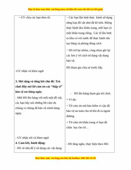 - HS biết được các vật dụng bảo vệ cơ thể. Trân trọng vật dụng đang bảo vệ