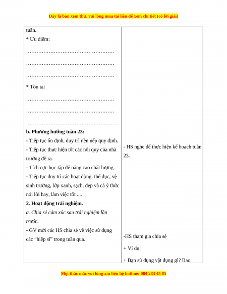 - HS nghe để thực hiện kế hoạch tuần trường đề ra. 23.
