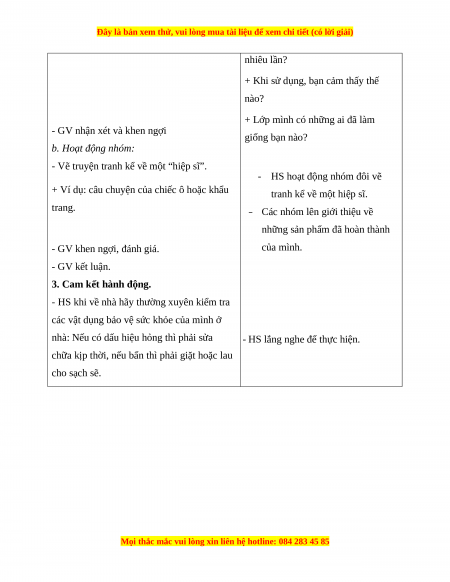 - GV: khẩu trang, xà phòng thơm, nước muối sinh lí nhỏ mũi, mũ (nón), ô (dù), áo mưa, mũ bảo hiểm,… - HS: Sách giáo khoa.