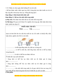 ớ các thành viên trong nhóm nh m ằ gi i ả quy t ế các v n đ ấ t ể rong bài h c đ ọ hoàn t ể hành nhi m ệ v h ụ c ọ t p. ậ 2.2. Năng l c khoa h ự c t ọ nhi ự ên - Nh n ậ th c ứ khoa h c ọ tự nhiên: Phát bi u ể đư c ợ khái ni m ệ dung d ch, ị độ tan c a ủ m t ộ chất trong nư c, n ớ ồng đ ph ộ n t ầ răm, n ng đ ồ m ộ ol. - Tìm hi u t ể nhi ự ên: Quan sát các hình nh ả v dung d ề ch, ch ị t ấ tan, dung môi, nêu và gi i