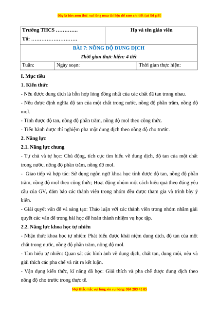 - Tiến hành được thí nghiệm pha một dung dịch theo nồng độ cho trước. 2. Năng lực 2.1. Năng lực chung