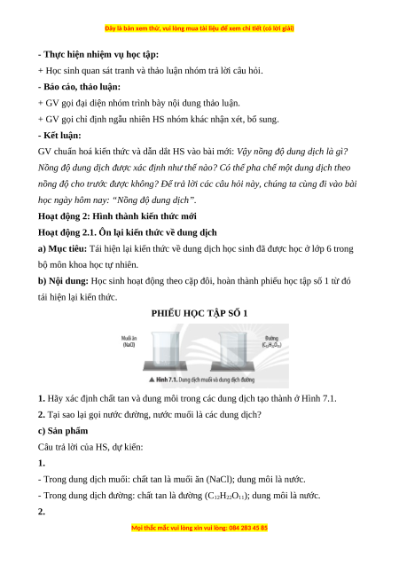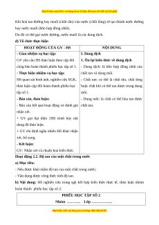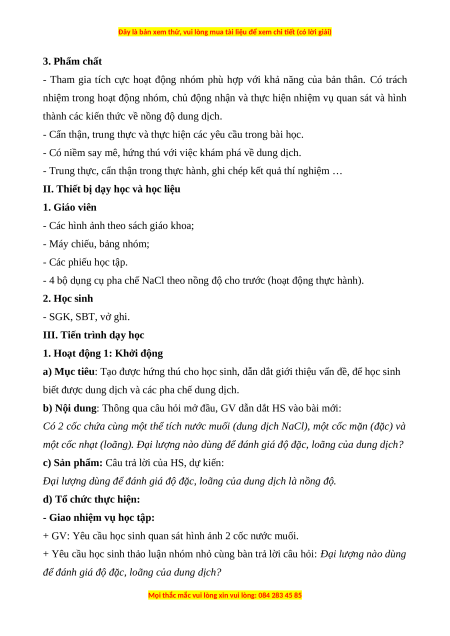 - 4 bộ dụng cụ pha chế NaCl theo nồng độ cho trước (hoạt động thực hành). 2. Học sinh - SGK, SBT, vở ghi.