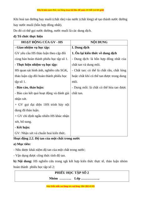 - Thực hiện nhiệm vụ học tập: chất tan và dung môi.