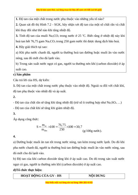 Hoạt động 2.2. Độ tan của một chất trong nước a) Mục tiêu: