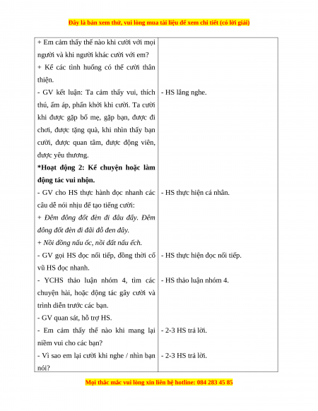 - Giúp HS được trải nghiệm khi được tiếp nhận cảm xúc tích cực, vui tươi, dí dỏm