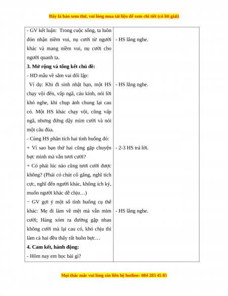 - Giúp HS trải nghiệm mang lại niềm vui, nụ cười cho bản thân và cho bạn bè.