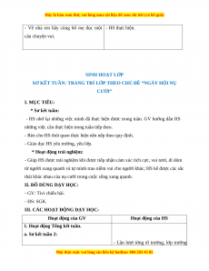 SƠ KẾT TUẦN: TRANG TRÍ LỚP THEO CHỦ ĐỀ “NGÀY HỘI NỤ CƯỜI” I. MỤC TIÊU: * Sơ kết tuần: