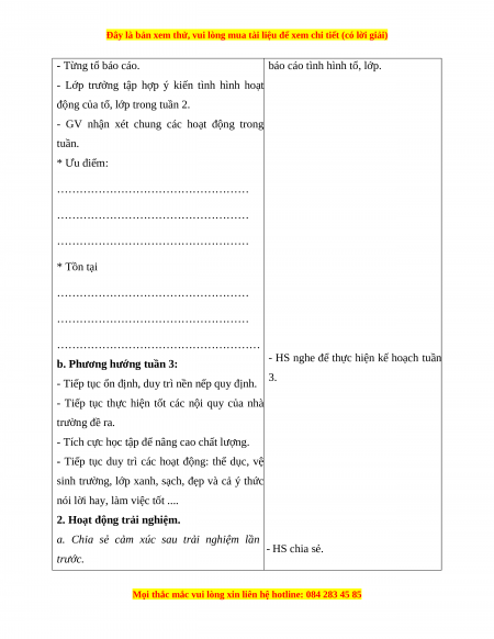 - HS nghe để thực hiện kế hoạch tuần