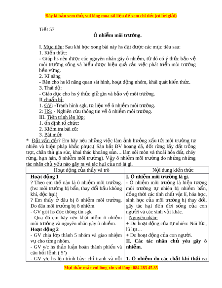 Đây là bản xem th , vu ử i lòng mua tài li u ệ đ xe ể m chi ti t (c ế ó l i ờ gi i ả ) Ti t ế 57 Ô nhi m ễ môi trư ng. ờ I. M c