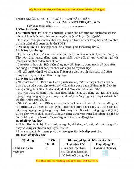 Giáo án Ôn đi vượt chướng ngại vật (thấp) Gdtc 3 Chân trời sáng tạo