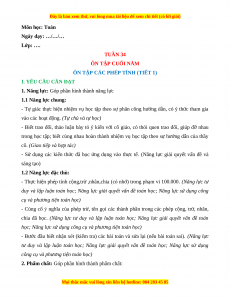 Ngày dạy: …/…/… Lớp: …. TUẦN 34 ÔN TẬP CUỐI NĂM