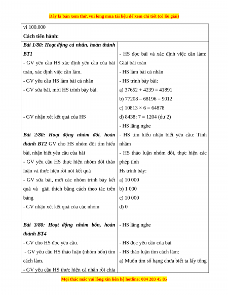 Bài 2/80: Hoạt động nhóm đôi, hoàn - HS tìm hiểu nhận biết yêu cầu: Tính