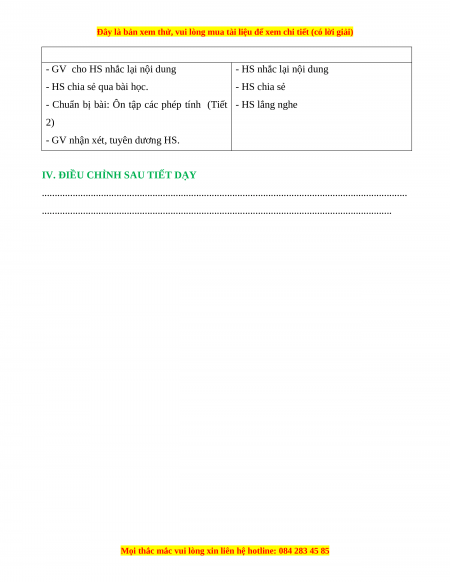 IV. ĐIỀU CHỈNH SAU TIẾT DẠY