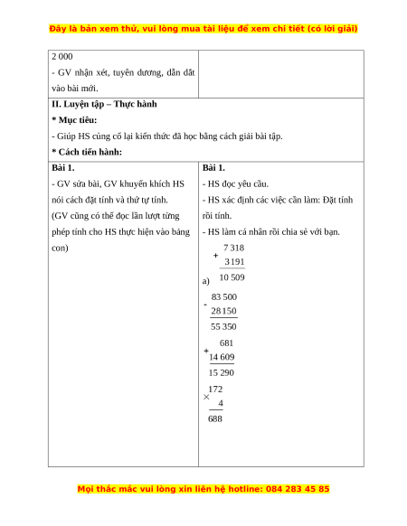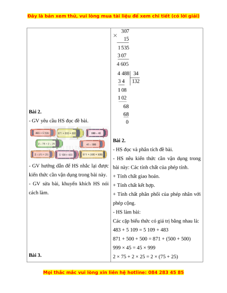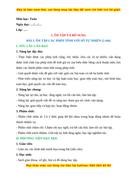 BÀI 2. ÔN TẬP CÁC PHÉP TÍNH VỚI SỐ TỰ NHIÊN (2 tiết)