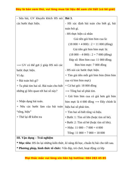 (GV cũng có thể đọc lần lượt từng rồi tính.