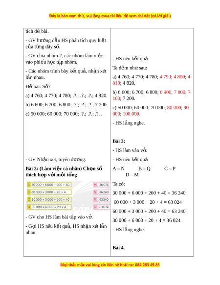 c) 50 000; 60 000; 70 000; .?.; .?.; .?. . 000; 100 000. - HS l ng ắ nghe. Bài 3: - HS làm vào v . ở - GV Nh n xét ậ , tuyên dư ng. ơ - HS nêu k t ế quả