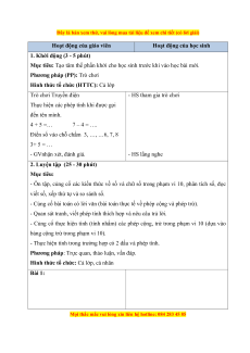 - HS: Bộ đồ dùng học toán 1 (mô hình, que tính, ghim, ....)