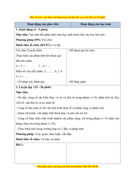 Đây là bản xem thử, vui lòng mua tài liệu để xem chi tiết (có lời giải) - HS nêu lại - Hs làm bài cá nhân - Nêu yêu cầu bài tập