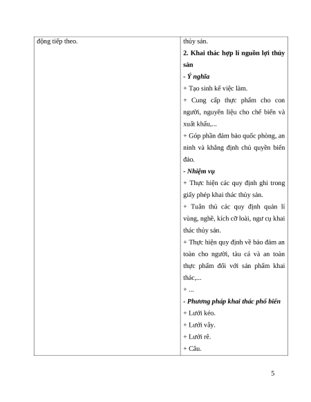 + Hệ thống hóa được các kiến thức cơ bản về bảo vệ và khai thác nguồn lợi thủy sản.