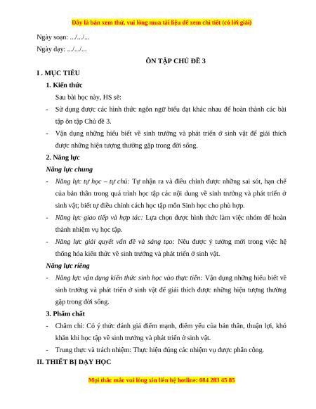 Ngày soạn: .../.../... Ngày dạy: .../.../... ÔN TẬP CHỦ ĐỀ 3 I . MỤC TIÊU 1. Kiến thức Sau bài học này, HS sẽ: