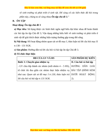 Giáo án Ôn tập chủ đề 3 Sinh học 11 Cánh diều