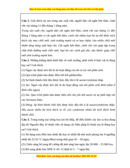 về sinh trưởng và phát triển ở sinh vật. Để củng cố các kiến thức đã hỏi trong