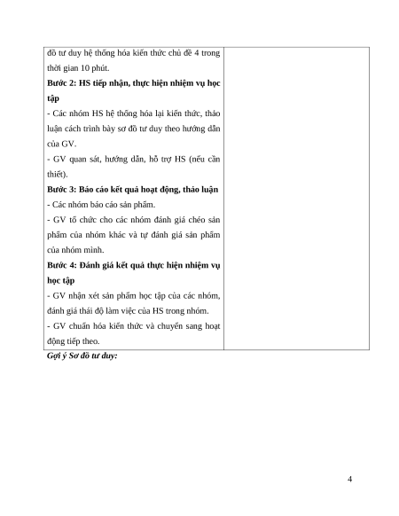 Hoạt động 1: Sơ đồ hóa hệ thống kiến thức chủ đề 4