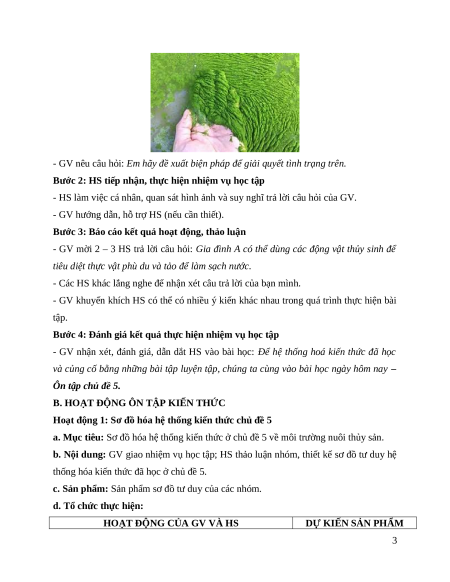 nuôi thủy sản; các biện pháp quản lí môi trường nuôi thủy sản để áp dụng vào cuộc sống. 3. Phẩm chất