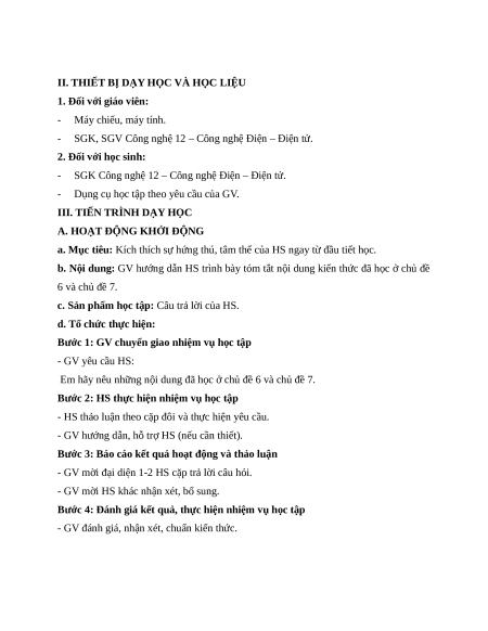 II. THIẾT BỊ DẠY HỌC VÀ HỌC LIỆU