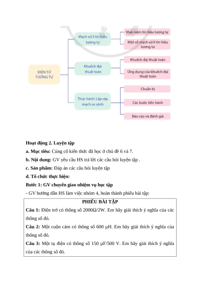 Trình bày tóm tắt được những kiến thức đã học về linh kiện điện tử và điện tử tương tự.