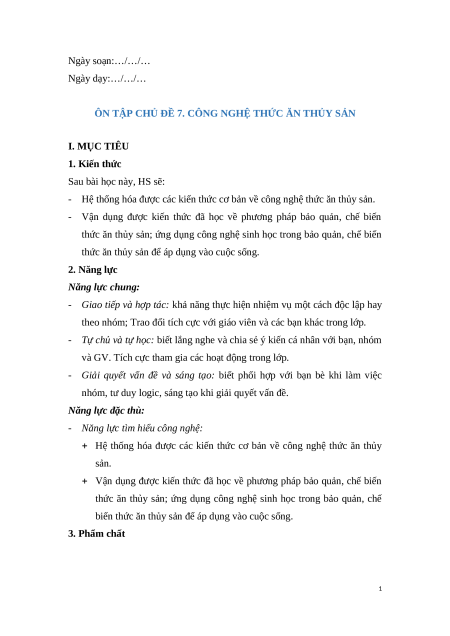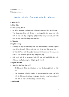 ÔN TẬP CHỦ ĐỀ 7. CÔNG NGHỆ THỨC ĂN THỦY SẢN I. MỤC TIÊU 1. Kiến thức Sau bài học này, HS sẽ: