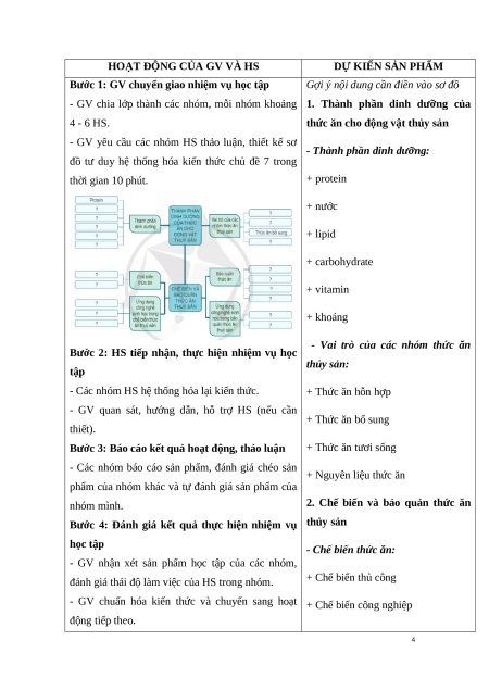 a. Mục tiêu: Sơ đồ hóa hệ thống kiến thức ở chủ đề 7 về công nghệ thức ăn thủy sản.