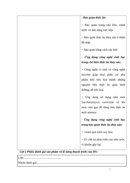 thức ăn thủy sản; ứng dụng công nghệ sinh học trong bảo quản, chế
