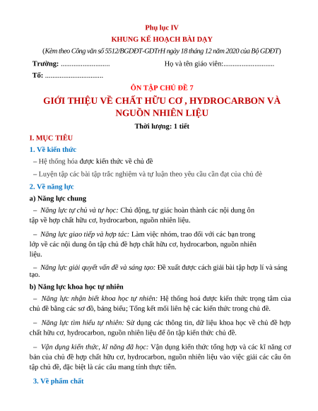tập về hợp chất hữu cơ, hydrocarbon, nguồn nhiên liệu.