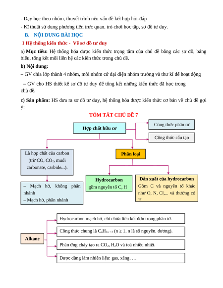 lớp về các nội dung ôn tập chủ đề hợp chất hữu cơ, hydrocarbon, nguồn nhiên liệu.